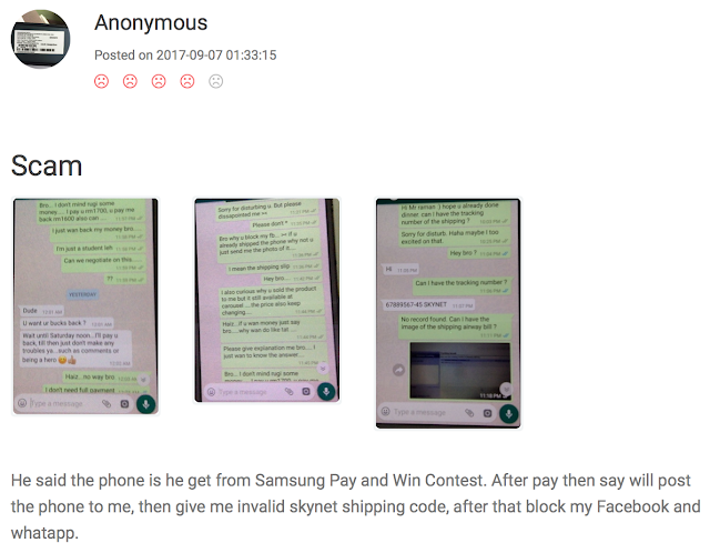 This guy, who calls himself Mr Ram, sells all types of things on Mudah and Carousell. Most of the things are watches, phones, and computers. He used to be well-known for selling cheap Seiko watches. He would ask buyers to bank in the money, then stop all contacts with the buyers after that. Recently, he started selling luxurious Rolex watches. He would get buyers to bank in a deposit before meeting, then stop all contacts with the buyers. Many of the pictures were lifted from other sellers, collectors, and watch bloggers. Please don't be fooled by his Bollywood handsome face :